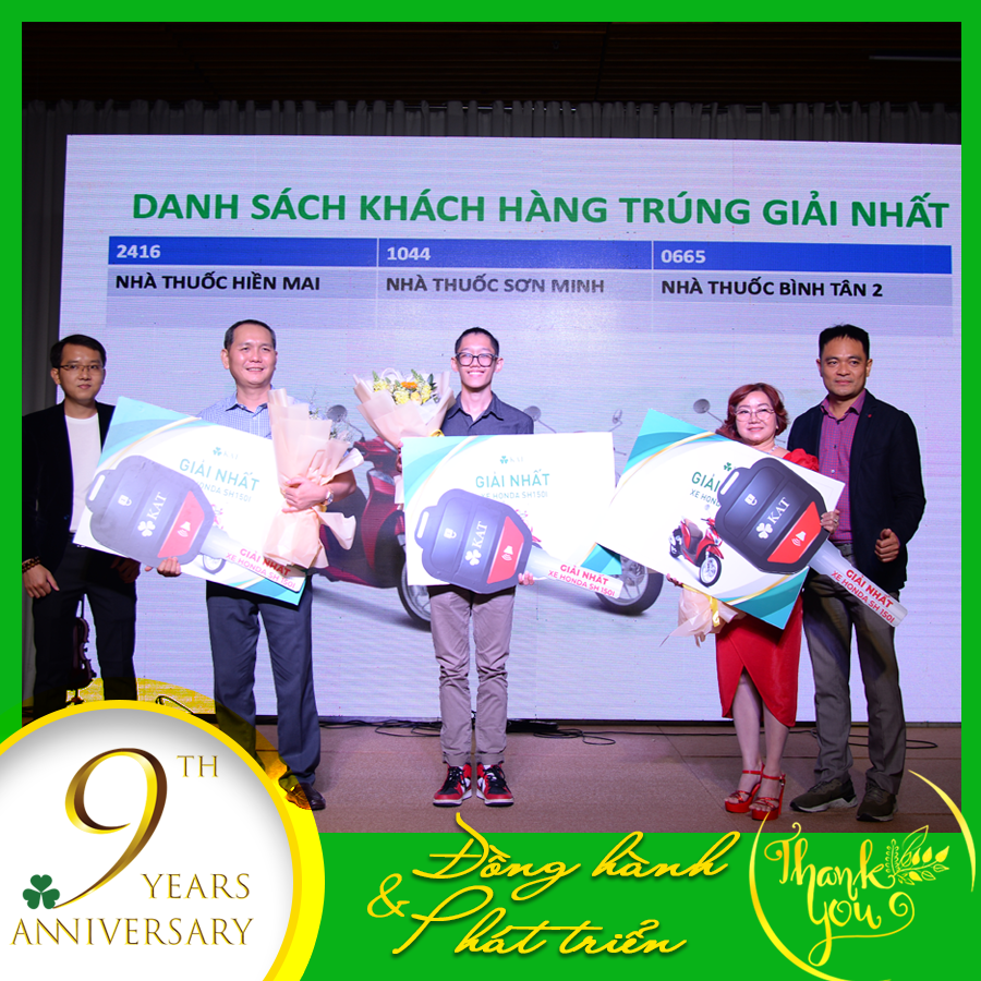 Một lần nữa, KAT VIỆT NAM gửi lời cảm ơn chân thành và tri ân sâu sắc đến Đại diện Chủ Nhà thuốc, Quý Khách Hàng, Quý Đối Tác, Nhãn Hàng đã tin tưởng và sát cánh cùng KAT trong suốt 9 năm vừa qua. Đồng thời, nếu trong sự kiện có xảy ra những sai sót không đáng có, mong Quý Khách bỏ qua và gửi những góp ý để sự kiện kế tiếp thành công hơn!
